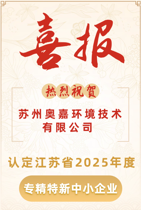 近日,江苏省工业和信息化厅正式公布2025年度江苏省专精特新中小企业名单,苏州奥嘉环境技术有限公司成功获此殊荣!